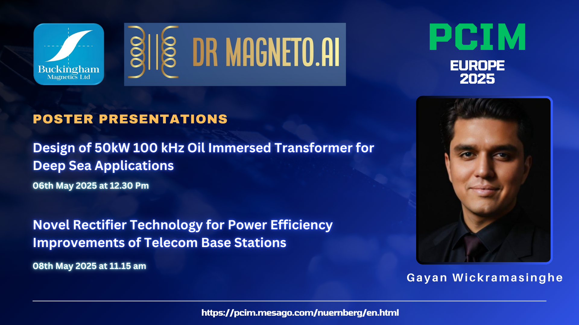Buckingham Magnetics achieved a remarkable milestone at PCIM Europe 2025, held from 3rd to 8th May in Nuremberg, Germany by successfully delivering a total of nine presentations: one seminar, two oral presentations, and six poster sessions. This level of participation is particularly noteworthy given the scale and prestige of the event.