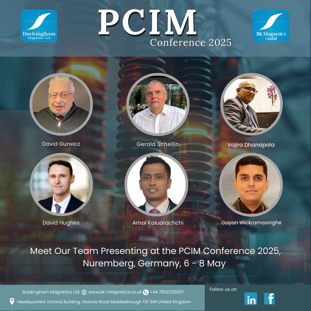 The Buckingham Magnetics UK and GmbH teams are excited to be part of Europe’s premier gathering of industry and academic experts: PCIM Europe 2025. Taking place from May 6th to 8th in Nuremberg, Germany, this leading international event is dedicated to Power Electronics, Intelligent Motion, Renewable Energy, and Energy Management.